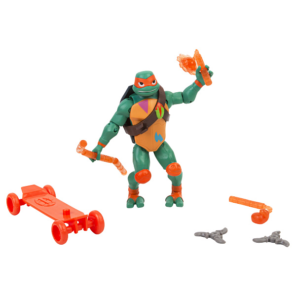 Точная копия Микки, самого младшего и неунывающего героя сериала про черепашек ниндзя, вызовет полный восторг у мальчика старше четырех лет. Фигурка устойчива, способна принимать любые позы благодаря подвижным конечностям. В игровом наборе ребенок найдет скейт и комплект любимого оружия героя. Хранить весь арсенал удобно в открывающемся панцире. Противоударный и безопасный пластик не имеет в составе токсичных компонентов. В процессе игры развивается воображение, логическое мышление и мелкая моторика.