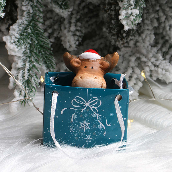 Небольшая ретро-игрушка для новогоднего украшения интерьера — керамическая фигурка оленя в темно-коричневых и бежевых тонах в праздничном красном колпаке в подарочном пакетике. Высота изделия составляет 7 см, что делает ее компактным и очаровательным дополнением праздничного декора. Фигурка выполнена в стильном ретро-дизайне, который создает атмосферу уюта и новогоднего настроения.