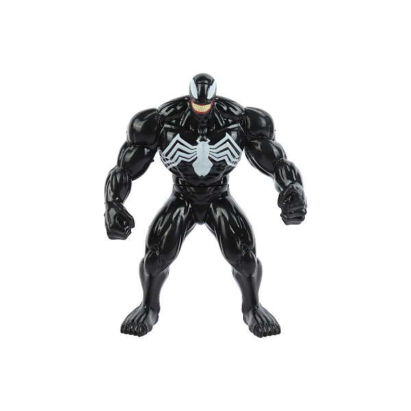 Сборная фигурка «Веном» выполнена в темных оттенках с характерными белыми полосами, имитирующими паучий символ на груди. Фигурка обладает высокой детализацией, включая текстурированные элементы, которые воспроизводят вид костюма симбиота. Изделие предназначено для сборки, включая отдельные части тела и головы, что позволяет детально изучить каждый аспект дизайна персонажа.