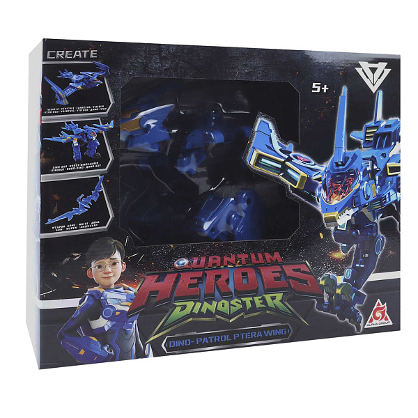 Фигурка-трансформер «Диностер 4в1 Птера Винг» из серии Quantum Heroes — многофункциональная и яркая игрушка для детей от 5 лет, которая обладает несколькими режимами трансформации. Игрушка выполнена в синих оттенках и представляет собой самолет-птеродактиль с возможностью превращения в робота-динозавра и обратно, а также обладает аксессуаром в виде дополнительного оружия.