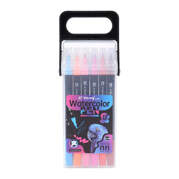 Фломастеры Yalong двусторонние в пластиковой упаковке 12цв