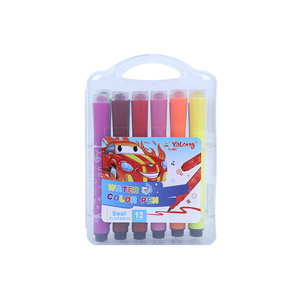 Фломастеры Yalong со штампом в пластиковом футляре 12цветов