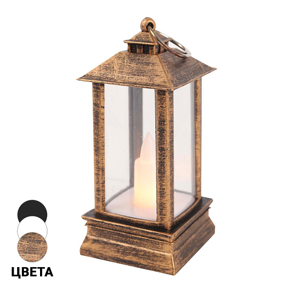 Внутри фонаря находится искусственная свеча с эффектом мерцания. Она работает от батареек, что обеспечивает большую мобильность устройства и безопасность использования в детских комнатах. Вес фонаря позволяет легко перемещать его по дому, а петля в верхней части изделия добавляет удобство для подвешивания.
