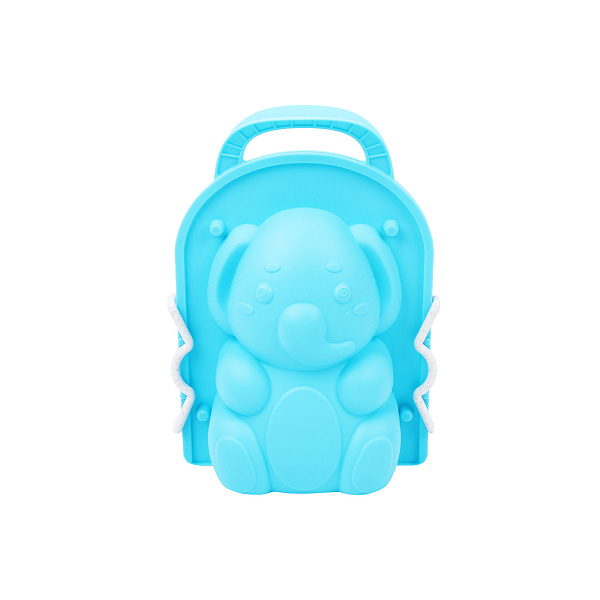 Изделие состоит из двух формочек. Достаточно засыпать влажный песок в одну формочку, а затем прижать ее другой, получится слоненок из песка. Цвет формы для лепки – голубой.