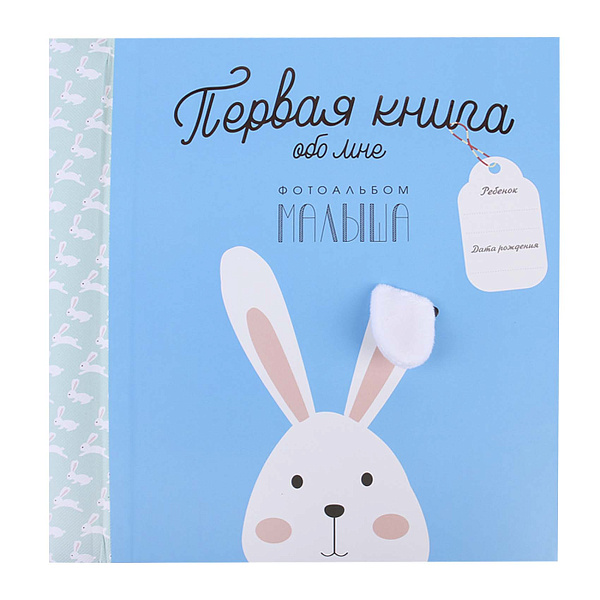 Фотоальбом малыша «Первая книга обо мне» в голубом оформлении — уникальная возможность сохранить в памяти важные моменты первого года жизни ребенка. Минималистичная обложка насыщенного голубого цвета украшена дружелюбным кроликом. В альбоме предусмотрены страницы для фотографий и заметок, фиксирующих первые слова, шаги и достижения. Дизайн страниц выполнен в нежных пастельных тонах.