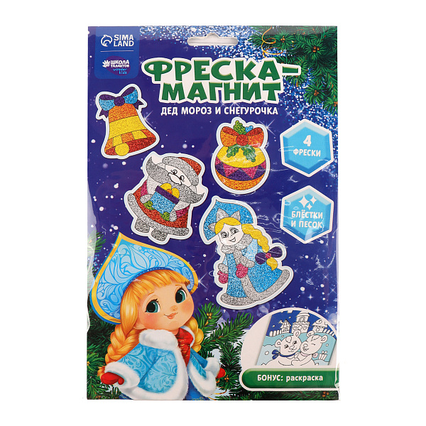 Фреска на магните «Дед Мороз и Снегурочка» — это увлекательный набор для детского творчества, который скрасит подготовку к Новому году и зимние каникулы. В комплект входят четыре фрески, изображающие праздничных героев: Деда Мороза, Снегурочку, новогодний колокольчик и декоративный шар.