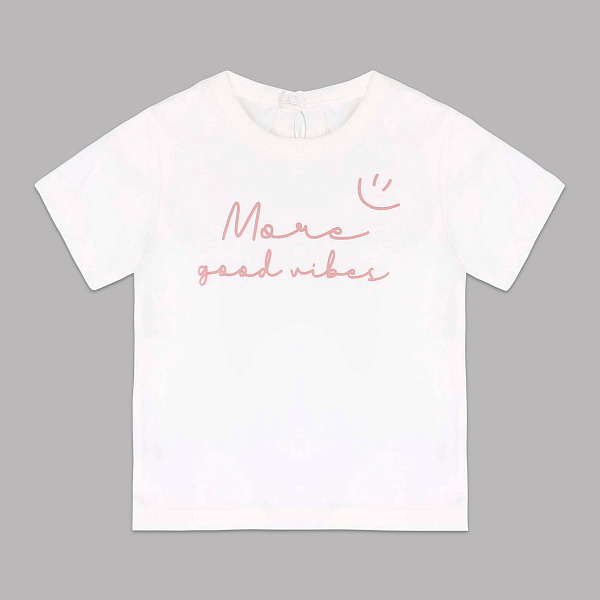 Элегантный дизайн дополнен небольшим вырезом с кнопкой на спине, который облегчает процесс надевания. Короткие рукава делают изделие идеальным выбором для теплой погоды, а универсальный белый цвет позволяет легко сочетать футболку с различными элементами гардероба.