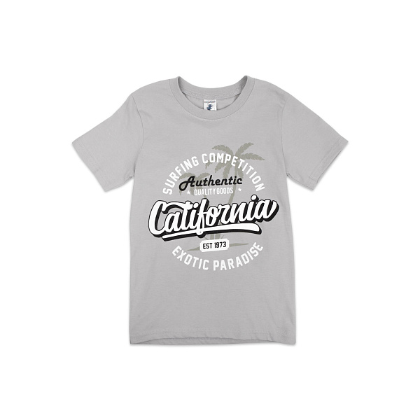 Футболка со стилизованным изображением калифорнийского пляжа и мотивирующей надписью придется по вкусу маленьким любителям летнего отдыха. Футболка с коротким рукавом чудесно подойдет для жаркой летней погоды мальчикам школьного возраста. Практичный серый цвет позволяет сочетать ее с гардеробом любого стиля и цветовой гаммы. Натуральный хлопок, из которого изготовлена фуфайка, бережно ухаживает за кожей ребенка во время носки и защищает ее от раздражения и опрелостей. Эластичные швы прошиты аккуратно, ткань при стирке не вытягивается и не линяет.