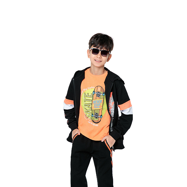 Яркая футболка с принтом в спортивном стиле подойдет для активных детей дошкольного и школьного возраста. Трикотажное полотно хорошо вентилируется в жаркую погоду, оставляя кожу малыша сухой. Горловина прошита эластичной вставкой, укрепленной по изнаночной стороне. Смесь из хлопка с акрилом делает трикотаж мягким и приятным к телу. Такая ткань не скатывается и не линяет, чудесно садится на фигуру любого типа. Фасон со втачным рукавом и четко выраженной линией плеча придает фигуре спортивный вид. Эластан в составе трикотажа обеспечивает футболке хорошее состояние даже при частой стирке.