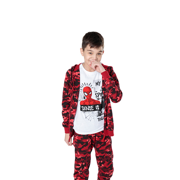 Белая лаконичная футболка с изображением известного героя Человека-паука понравится каждому ребенку, который увлекается комиксами и супергероями. Свободный крой футболки не сковывает движения в процессе игры, не натирают кожу и не вызывают аллергии. В составе футболки использован натуральный хлопок с дополнением эластана для мягкости ткани. Хлопок препятствует появлению пота, обеспечивая естественную вентиляцию воздуха. Горловина и рукава тщательно обработаны, поэтому изделие не порвется и не разойдется по швам, прослужив долгое время своего юному хозяину.