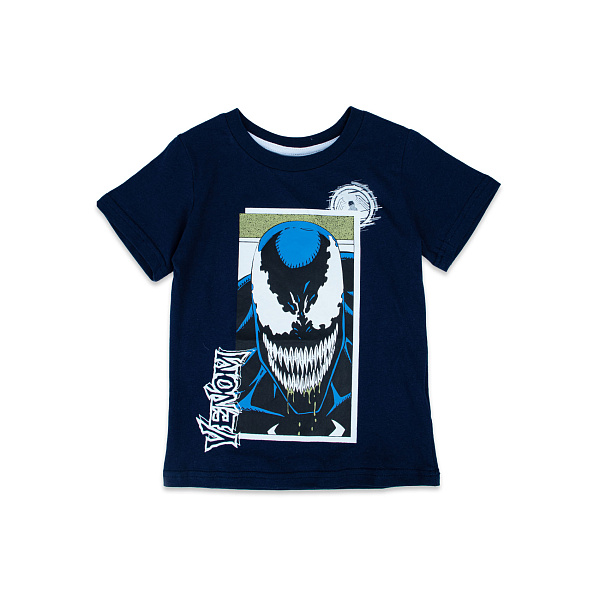 Черная лаконичная футболка с изображением известного инопланетного героя Венома понравится каждому ребенку, который увлекается комиксами и супергероями. Свободный крой футболки не сковывает движения в процессе игры, а также не натирает детскую кожу и не вызывает аллергической реакции. В составе футболки использован натуральный хлопок, который препятствует появлению пота, обеспечивая естественную вентиляцию воздуха. Горловина и рукава тщательно обработаны, поэтому изделие не порвется и не разойдется по швам, прослужив долгое время своего юному хозяину.