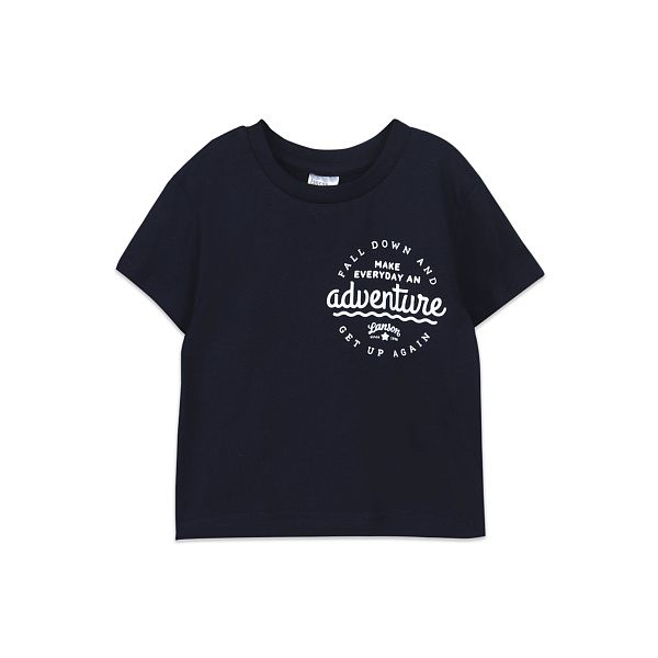 Стильная футболка с коротким рукавом органично впишется в гардероб мальчика ясельного возраста. Она эффектно сочетается с джинсами, шортами, любыми брюками. Свободный крой гарантирует комфорт при активных движениях. Широкий вырез горловины упрощает переодевание малыша. Украшением служит контрастная графическая надпись на груди.