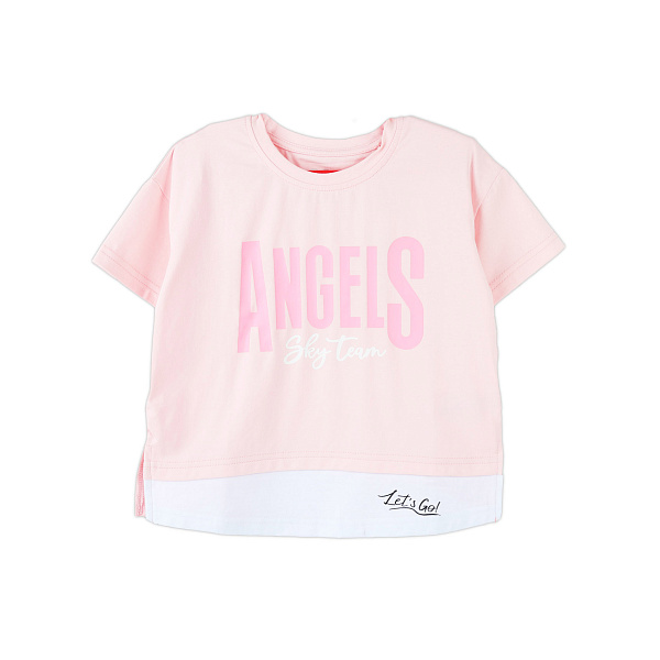 Стильная футболка с белой вставкой понравится любой девочке. Модель украшена крупной графической надписью, имеет свободный крой. Небольшие боковые разрезы и широкая горловина упрощают процесс переодевания. Аккуратные соединительные швы не натирают кожу ребенка. Изделие хорошо сочетается с любыми брюками, лосинами, шортами и юбками. Это позволит создать немало интересных образов для летних прогулок.