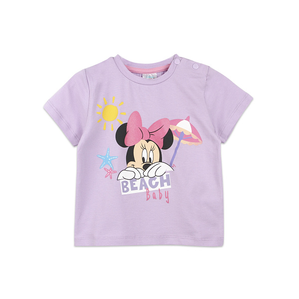Удобная фуфайка для маленькой девочки имеет застежку на плече в виде миниатюрных кнопок. Крой создан с учетом потребностей ребенка, поэтому изделие не сковывает движения, не вызывает дискомфорта в процессе переодевания. Модель с коротким рукавом предназначена для ношения дома и на улице в жаркую погоду. Она украшена изображением мышки Минни из знаменитого мультфильма. Мягкий трикотаж на основе натурального хлопка обеспечивает естественную циркуляцию воздуха, гигроскопичен, не способен спровоцировать аллергию или раздражение на коже. Ткань не мнется, легко отстирывается, быстро сохнет.