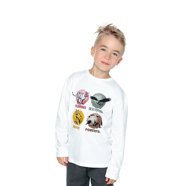 Футболка с длинным рукавом – популярная детская одежда. Она одинаково придется по душе мальчиками и девочками. Простота пошива, не обремененная сковывающими движение элементами, сделает носку уютной и комфортной. Изделие имеет белоснежный фон, где равномерно расположены изображения разных животных. Благодаря использованию в производстве натурального хлопка футболка с длинным рукавом приятно прилегает к телу, хорошо пропускает воздух, но при этом сохраняет тепло. Она согреет в прохладную погоду и подарит комфорт в теплую. Рекомендовано для детей дошкольного и школьного возраста.