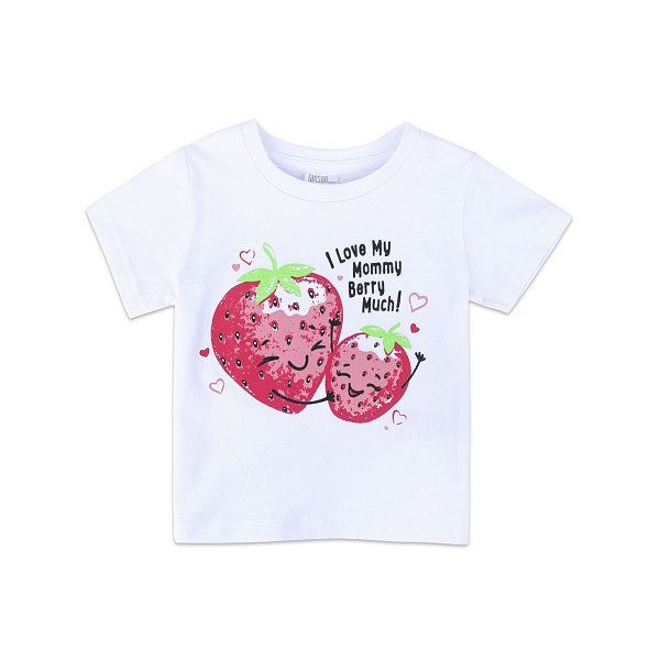 Футболка ориентирована на малышек ясельного возраста. Модель привлекает внимание крупным рисунком в виде сочных ягод клубники. Она органично впишется в летний гардероб и выручит в самый жаркий день. Футболка обладает свободным кроем, сшито из прочного хлопкового трикотажа. Материал не препятствует естественной вентиляции, быстро впитывает излишки влаги, а также долгое время сохраняет привлекательность. Изделие хорошо переносит регулярную стирку в ручном или автоматическом режиме, не деформируется, не линяет.