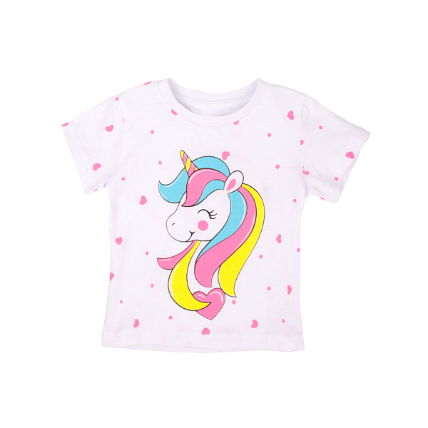 Нежная футболка с изображением сказочного единорога позволит каждой маленькой девочке ощутить себя настоящей принцессой. Модель привлекает внимание оригинальным оформлением, поэтому органично впишется в летний гардероб. Аккуратные швы не вызовут дискомфорта в течение дня. Для пошива использован легкий трикотаж на основе прочных хлопковых волокон. Он устойчив к износу, а также долгое время сохраняет эстетичный внешний вид, легко отстирывается в ручном или автоматическом режиме. Материал быстро сохнет, отлично пропускает воздух, что понравится активному ребенку.
