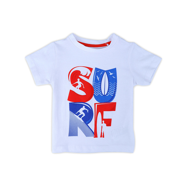 Стильная футболка украшена графическим рисунком в виде латинских букв. Изделие предназначено для детей ясельного возраста, имеет свободный крой. Модель универсальна в использовании, органично дополнит летний или спортивный образ. Для пошива применяется тонкое трикотажное полотно на основе натурального хлопка. Ткань не препятствует естественному воздухообмену, не мнется, быстро впитывает влагу и сохнет. Допускается стирка в ручном и автоматическом режиме с учетом рекомендаций производителя. Одежда безопасна для детского организма, долгое время сохраняет потребительские свойства и эстетичный вид, что понравится активным детям.