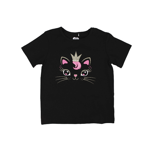 Черная футболка Lanson kids свободного кроя удачно завершит образ каждой юной принцессы. В составе ткани использован натуральный хлопок, благодаря чему тело не перегревается. А добавление эластана делает изделие мягким и эластичным – такая футболка сядет на фигуру любого типа, а также не будет сковывать движения в процессе носки. Красочный принт кошечки с королевской короной сразу показывает, кем является обладательница футболки. Благодаря нейтральному черному цвету футболка будет органично сочетаться с яркими, светлыми или темными вещами.