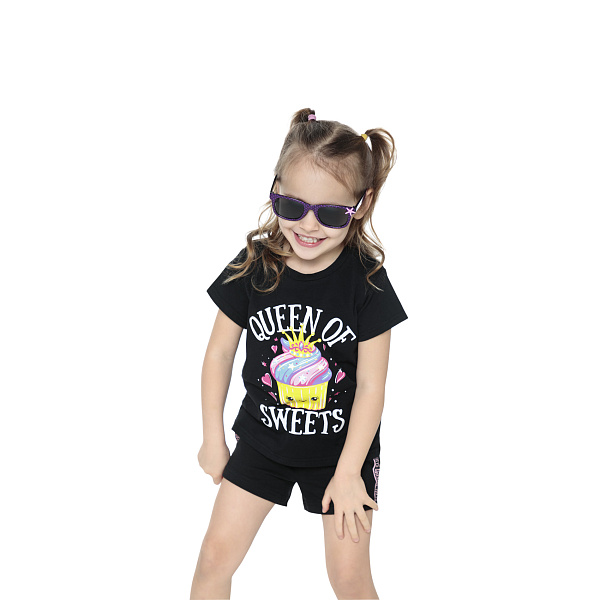 «Королева сладостей» — такая надпись украшает легкую футболку из хлопчатобумажного материала для девочки с 3 месяцев до полугода. Смотрится фуфайка оригинально за счет аппликации в виде пирожного, украшенного короной. Но кроме красоты, летняя майка обладает высокими показателями качества — натуральная хлопковая ткань для пошива, аккуратные швы, тщательно прошитая горловина и отвороты, чтобы ни одна деталь не причинила малышке неудобств. Износоустойчивые волокна хлопка и лучшие краски не боятся регулярных стирок, не линяют, изделие сохраняет яркость и форму. Рекомендовано для детей ясельного возраста.