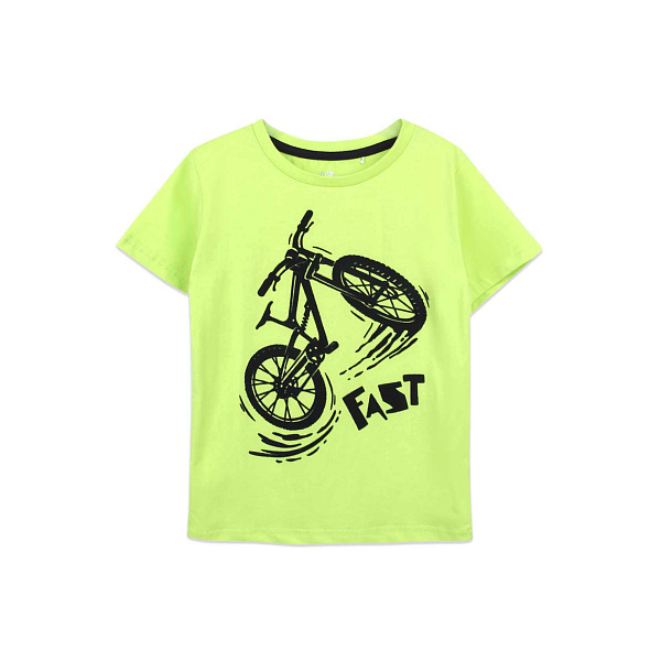 Основной цвет – светло-зеленый. На груди имеется принт с изображением велосипеда и надписью «fast» (быстрый).
