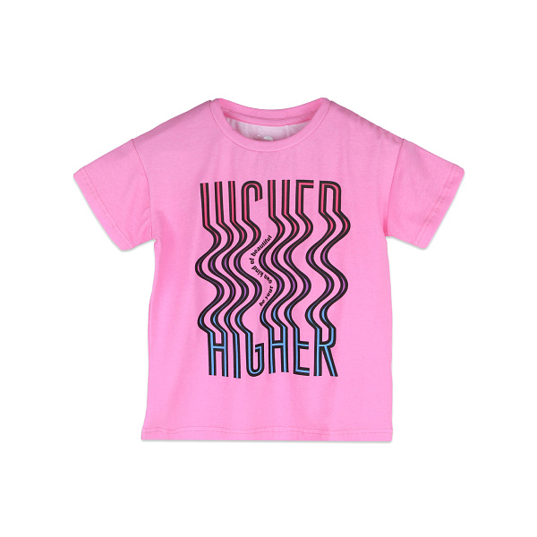 Футболку классического кроя можно надеть на прогулку или в поездку, а также отправиться в ней в детский сад или по магазинам с мамой. На лицевой стороне ярко-розовой футболки размещена стильная картинка. Футболка будет хорошо смотреться вместе с брюками и юбкой в светлых тонах.