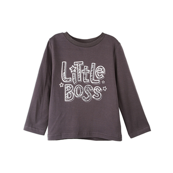 Каждый малыш с детства ощущает себя самой важной персоной в доме. Но чтобы он точно был убежден в этом, добавьте в его гардероб стильный лонгслив с красочной надписью «Little boss». Ткань выполнена на основе натурального хлопка, она мягкая на ощупь и приятная к телу, хорошо пропускает воздух и дарит комфорт в процессе носки. Крой кофты свободный, поэтому движения ребенка не будут скованны. Рукава без манжет, вырез горловины круглый, воротник отсутствует. Дизайн кофты минималистичен, что делает лонгслив универсальным. Рекомендовано для детей ясельного возраста.