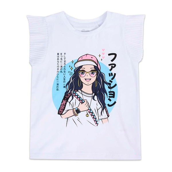 Стильная футболка с коротким рукавом необычной формы станет предметом гордости любой девочки. Юная модница по достоинству оценит яркий рисунок на груди, окруженный иероглифами. Модель хорошо сидит на фигуре любого типа, не сковывает движения. Она органично сочетается с любыми шортами, брюками и юбками, позволяет создавать яркие образы с самыми обычными вещами.