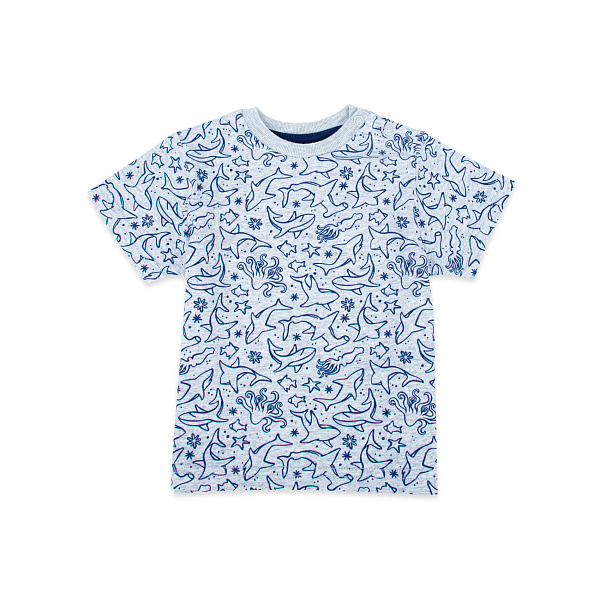 Футболка белого света со схематическим принтом с рыбками подойдет к гардеробу повседневного или торжественного стиля. Футболка изготовлена из мягкого трикотажа с высоким содержанием хлопковых волокон. Являясь природным антисептиком, хлопок бережно ухаживает за кожей малыша и защищает ее от раздражения и опрелостей. Для комфортного надевания на плече фуфайки сделана прочная кнопочная застежка. Горловина обработана мягкой эластичной резинкой. А чтобы изделие хорошо держало форму и смотрелось на детской фигуре, в состав ткани добавлено небольшое количество эластана. Изделие легко переносит стирку и не растягивается. Рекомендовано для детей ясельного возраста.