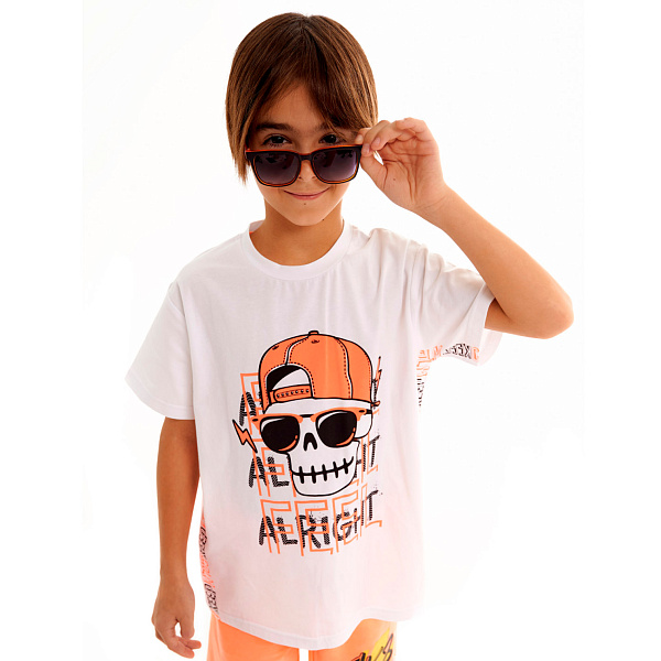 Футболка с коротким рукавом понравится мальчику дошкольного возраста. Модель украшена оригинальным рисунком и окантовкой в виде графических надписей. В такой футболке юный исследователь с удовольствием отправится на прогулку. Он почувствует себя настоящим пиратом, придумает немало увлекательных игр.
