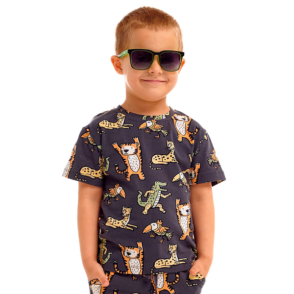 Футболка с забавными изображениями животных и экзотических птиц органично впишется в летний гардероб маленького мальчика. В ней ребенок сможет отправиться на прогулку или в путешествие.