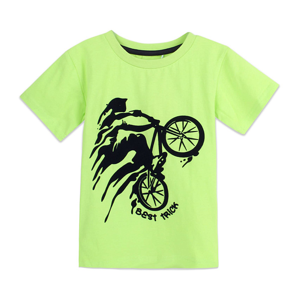 Яркая футболка с контрастным изображением велосипедиста станет любимым элементом гардероба любого мальчишки. Модель классического кроя не сковывает движения, не вызывает сложностей в процессе переодевания. Она универсальна в подборе сочетаний, может применяться в качестве уличной или домашней одежды.