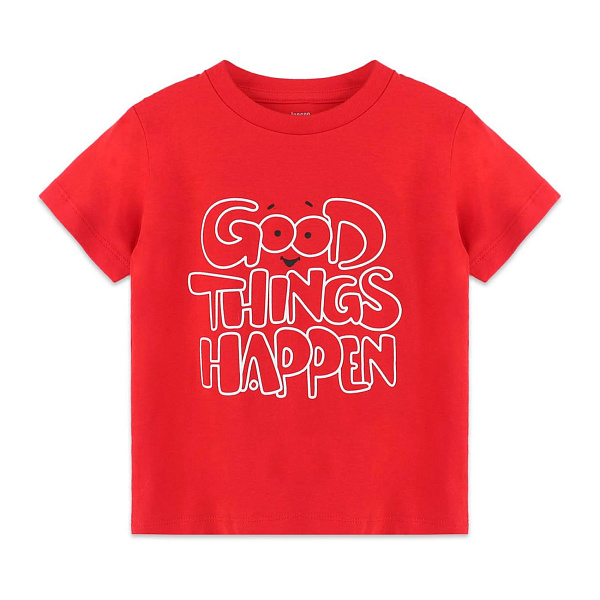 Футболка для мальчика отличается оригинальным дизайном и высоким качеством исполнения. Красный цвет придает изделию особенный шарм. Эта модель стильно и модно смотрится в комплекте с брюками или шортами белого, черного, серого, бежевого и синего цветов. Центр груди декорирован крупным текстовым принтом.
