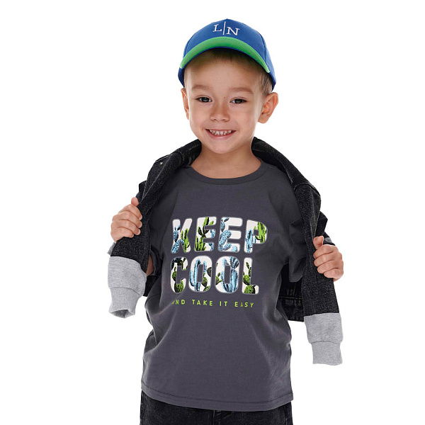 Футболка Lanson Kids с надписью с рисунком кактусов серая
