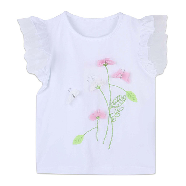 Футболка Lanson Kids с объемными цветами и рюшами на рукавах белая