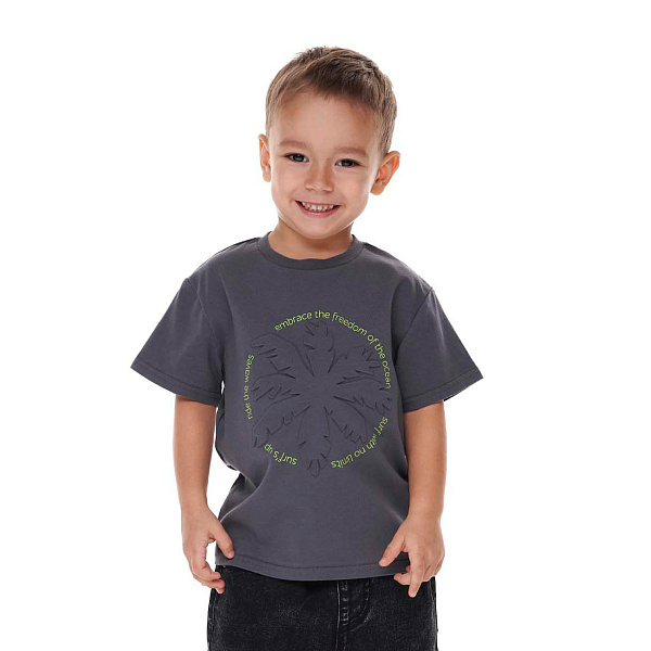 Состав ткани — 100% хлопок. Она пропускает воздух, впитывает влагу, хорошо переносит машинную стирку и быстро сохнет. Натуральный материал обеспечивает комфорт даже в самый жаркий день, позволяя коже дышать. Короткий рукав и свободный крой не стесняют движений, что особенно важно для активных мальчиков.