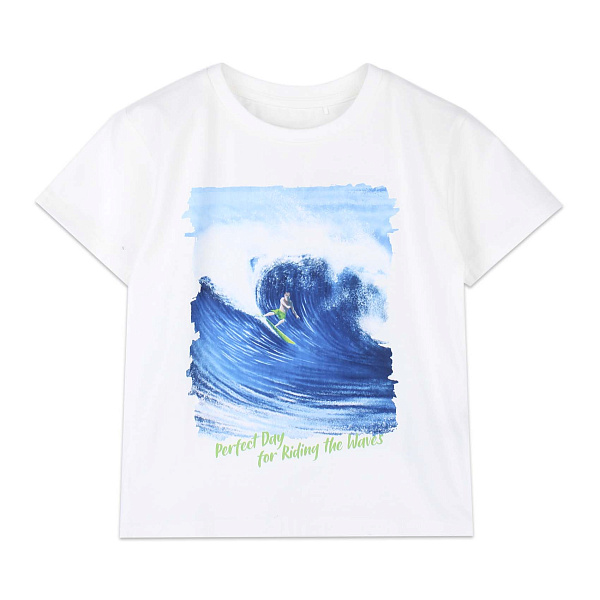 Изображение серфера на волне, выполненное в ярких синих тонах, добавляет динамики и свежести в повседневный детский гардероб. Это не просто одежда, а практичный элемент на каждый день, который приносит радость и вдохновение для юных любителей морских приключений.