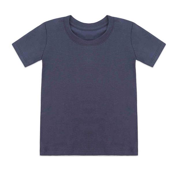 Футболка детская темно-серого цвета выполнена в классическом дизайне с короткими рукавами и круглым вырезом горловины. Модель отличается простотой и универсальностью, благодаря отсутствию принта, что делает ее идеальной для повседневной носки и сочетания с различными элементами детского гардероба.