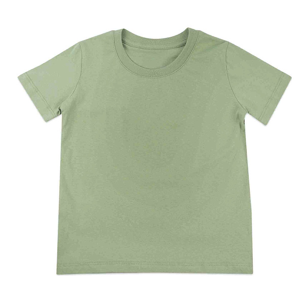 Футболка детская зеленого цвета выполнена в классическом стиле с короткими рукавами и круглым вырезом горловины. Модель отличается простым и универсальным дизайном без принта, что делает ее идеальной основой для повседневного гардероба.