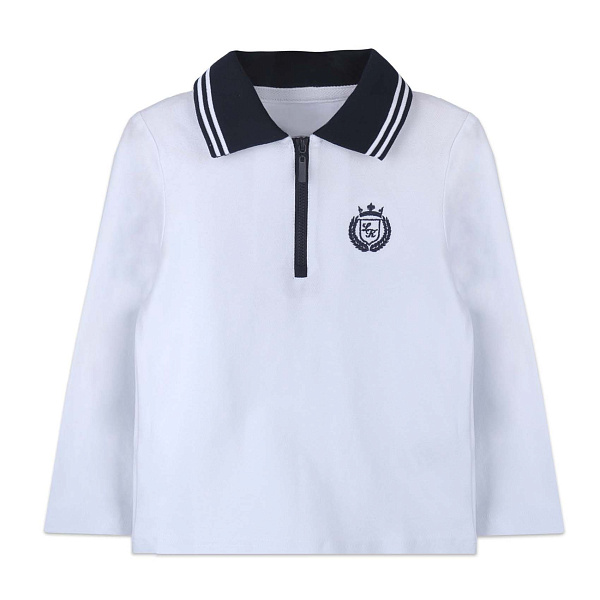 Футболка поло Lanson Kids с контрастным темно-синим воротником белая