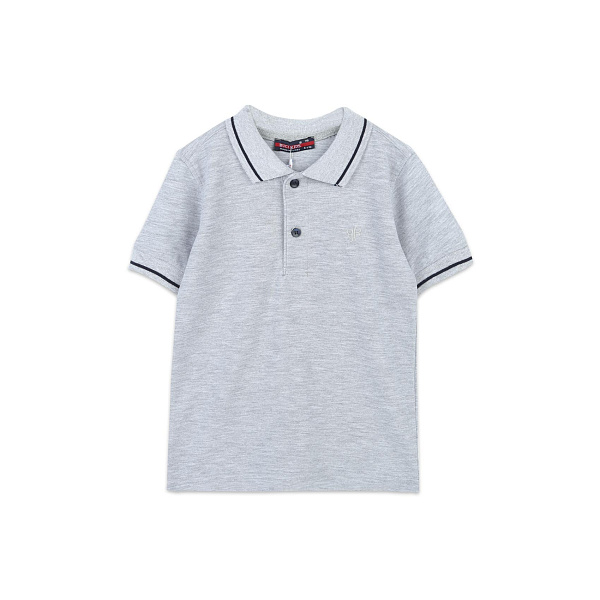 Футболка-поло нейтрального серого цвета пополнит гардероб ребенка и внесет разнообразие в его стиль. Мягкий трикотаж на основе натурального хлопка приятный на ощупь, он хорошо пропускает воздух и дарит комфорт в носке. Свободный крой и короткие рукава не сковывают движения. Низ рукавов дополнен тонкими эластичными манжетами с черной полосой. Воротник в стиле «поло» отложной с декоративной черной полосой. Застежка из двух пуговиц на планке облегчит переодевание и добавит комфорта. Завершает дизайн маленькая нашивка в тон рубашки. Рекомендовано для детей школьного возраста.