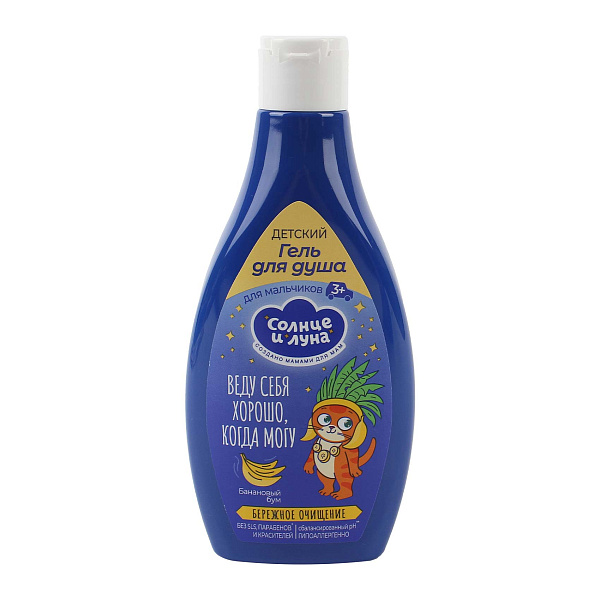 Детский гель для душа «Солнце и Луна» предназначен специально для мальчиков от 3 лет, обеспечивая нежное и бережное очищение кожи. Мягкая формула с ароматом банана комфортно заботится о детской коже, не вызывая раздражений и сохраняя её естественный баланс увлажнённости. Весёлый дизайн с ярким персонажем делает гель привлекательным и добавляет положительные эмоции в процесс купания.