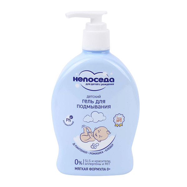 Гель для подмывания «Непоседа» объемом 300 мл предназначен для самых маленьких с самого рождения. Продукт представлен в нежно-голубом флаконе с удобным диспенсером, который обеспечивает точную дозировку и облегчает процесс использования.