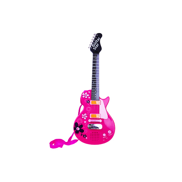 Чудесным полезным подарком для активной девочки старше 6 лет станет рокерская гитара с оригинальным дизайном. Инструмент имеет привлекательное и яркое оформление: широкий текстильный ремешок позволит без труда удержать гитару, а также переносить ее при необходимости.