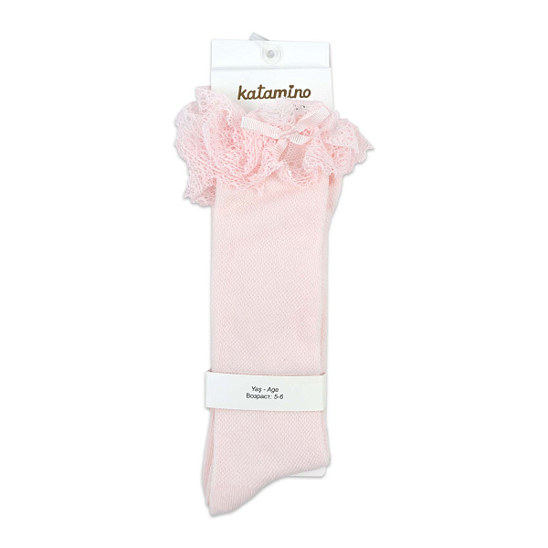 Гольфы Katamino хлопковые с кружевом и бантиком нежно-розовые