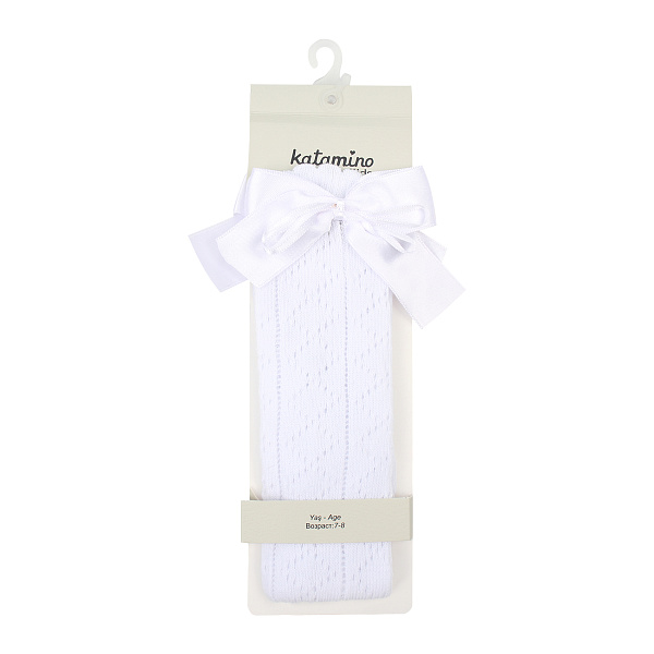 Гольфы для девочки белого цвета — это нежный и стильный аксессуар, который станет прекрасным дополнением к праздничному или повседневному образу. Изящный ажурный узор придает изделию легкость, а аккуратный бантик добавляет милый декоративный акцент. Мягкая резинка с волнистым краем обеспечивает удобную посадку, не сдавливая ножки и не вызывая дискомфорта.