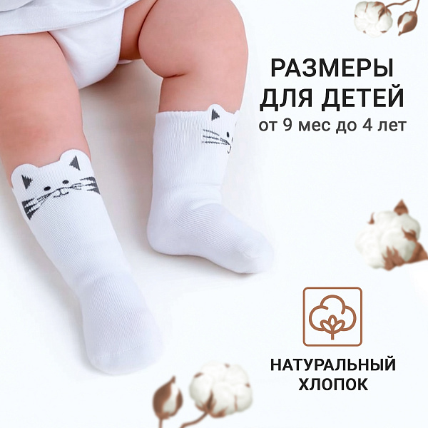 Классические белые гольфы – это неотъемлемая вещь для каждой школьницы. В кошачья мордочка в верхней части добавит в образ яркий акцент. В основе ткани использован натуральный хлопок, материал хорошо пропускают воздух, обеспечивая сухость и комфорт в носке. Небольшая добавка нейлона и эластана повышают упругость и тягучесть изделий. Такие гольфы не сковывают движения в процессе повседневной носки. Базовый белый цвет органично впишется как в праздничные наряды, так и под школьную форму. Рекомендовано для детей младшего возраста.
