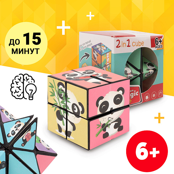 Головоломка «Магический куб 2 в 1: Панды» радует уникальным дизайном и яркими цветами. Куб выполнен с изображениями милых панд, которые добавляют игре веселья и привлекают внимание детей.