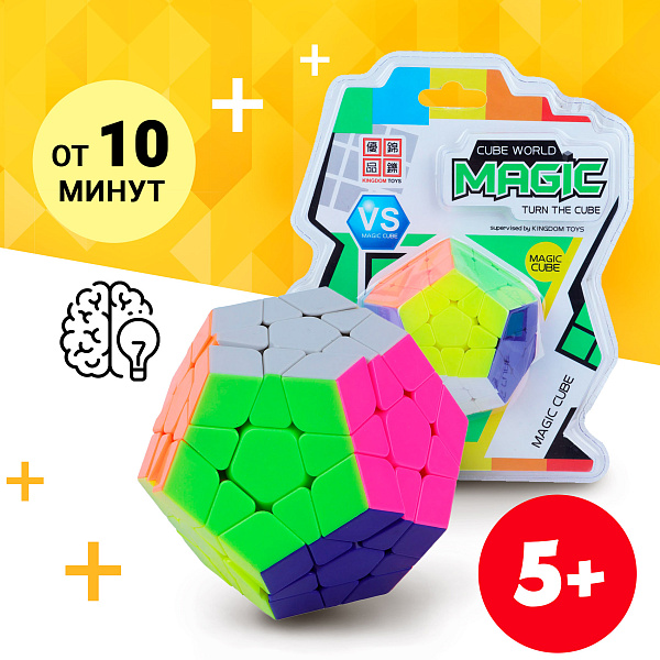 Магический куб – это многогранный кубик Рубика со звездой в центре каждой из семи цветных граней (белой, серой, синей, оранжевой, фиолетовой, малиновой и зеленой). Настольная игрушка легко запутывается, грани без труда перемещаются.