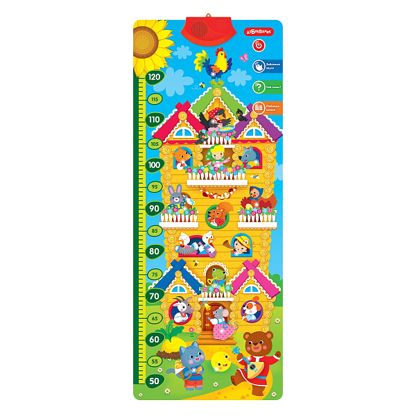 Наблюдать за ростом малышей теперь можно с интерактивным приспособлением. Ростомер снабжен активными кнопками с яркими рисунками. Мальчики и девочки старше 1 года смогут самостоятельно включить одну из 18 забавных песенок, познакомятся с двумя десятками озвученных персонажей, прослушают 3 сказки.